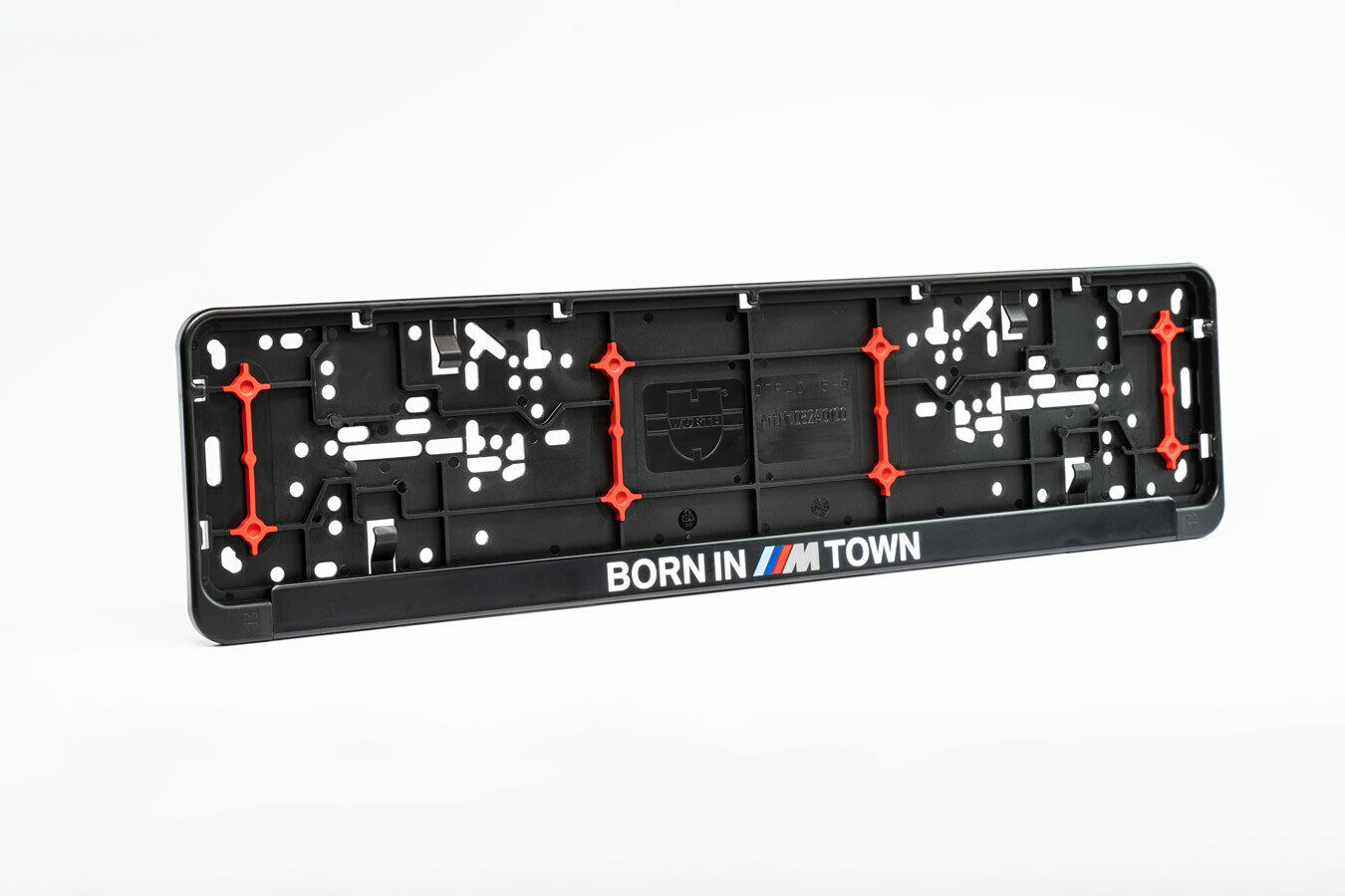 Unsere exklusiven BMW Kennzeichenhalter mit der Aufschrift “Born in M Town” markieren deutlich den Status deines Fahrzeuges.